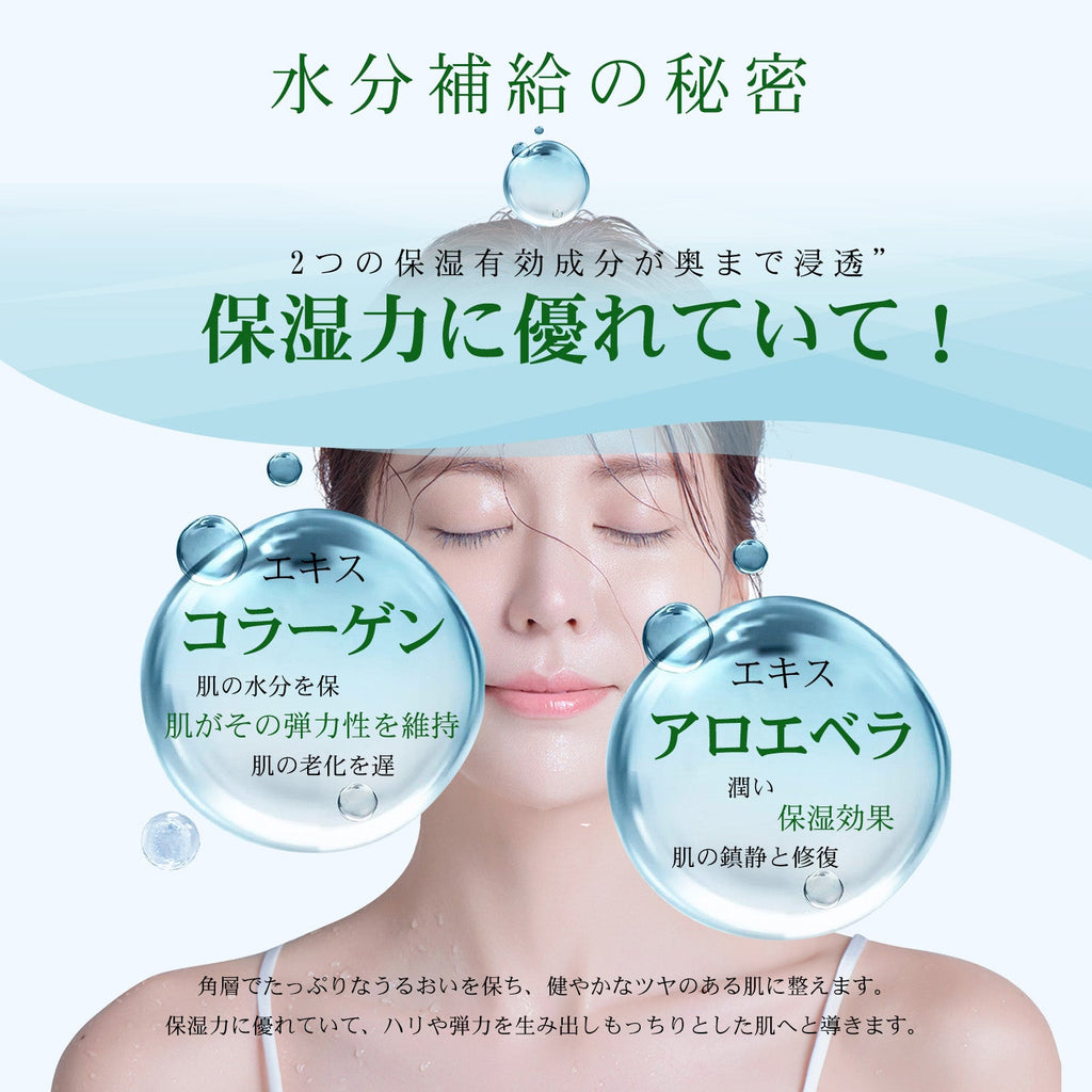 • コラーゲンとヒアルロン酸で、しっかりとした保湿とハリの強化。