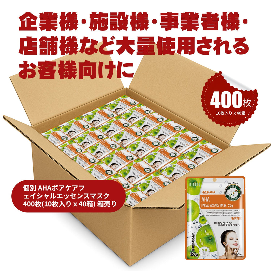 MITOMO 個別 AHAポアケアフエイシャルエッセンスマスク400枚(10枚入り x40箱) 箱売り【W-MTSS00512-B-2Jx040】