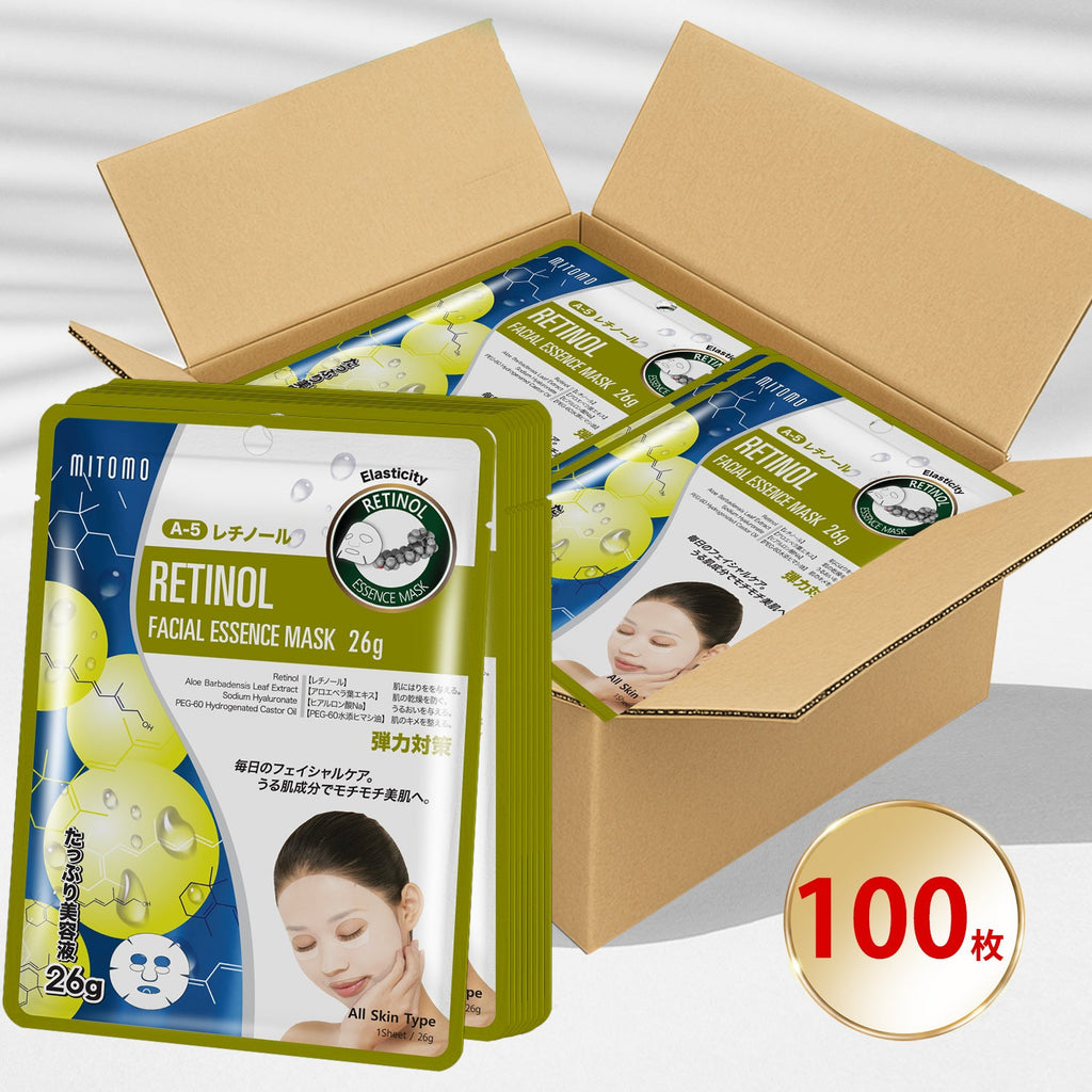 若々しい肌を手に入れる!MITOMOナチュラルレチノールタイトニングフェイスエッセンスマスク/100枚【MTSS00512-A-5Jx010】