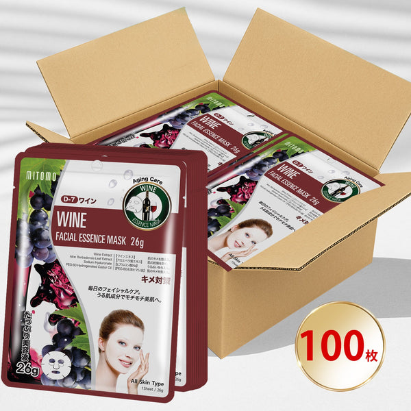 MITOMO ナチュラルワインエイジングケアフェイシャルエッセンスマスク/100枚- 肌をワインでリフレッシュ!若々しい輝きを取り戻す特別なスキンケアアイテム【MTSS00512-D-7Jx010】