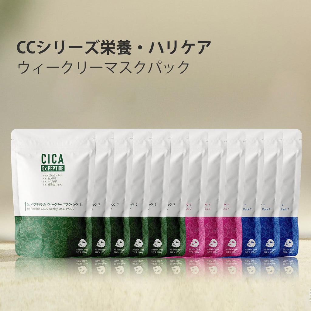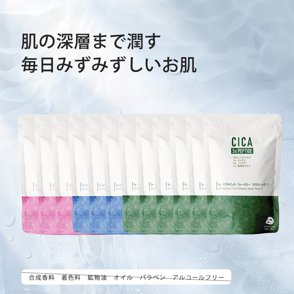 美肌力をサポート!MITOMO CICA コラーゲン ヒアルロン酸 ペプチドx2ウィークリーフェイスマスクパック4コンボセット<日本製>【TMCC00001-07-100】