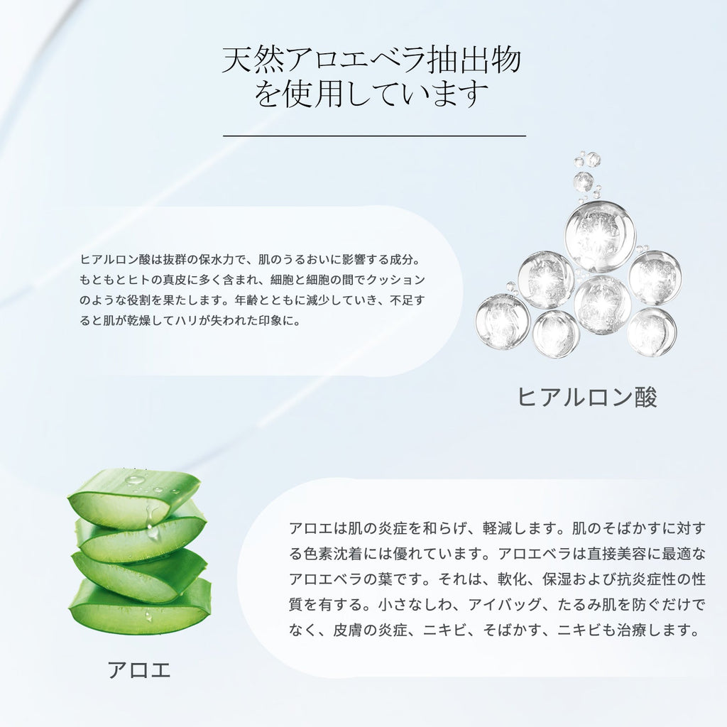 ヒアルロン酸を含み、保湿性は極めて優れていて、肌のみずみずしさを保ちます。理想的な天然保湿因子で肌の潤いと明るさを助けます。ヒアルロン酸は、外部の刺激から肌を保護し、肌のバリア機能を強化します。これにより、肌が外部環境からのダメージや刺激に対してより耐性を持つことができます。