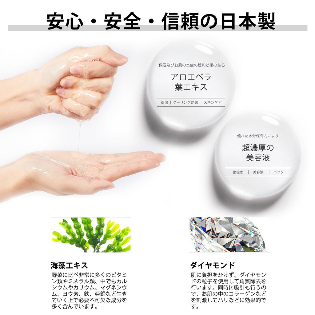 水、グリセリン、BG、DPG、フェノキシエタノール、クロルフェネシン、アラントイン、カルボマー、パンテノール、PEG-60水添ヒマシ油、TEA、香料、ヒバマタエキス、加水分解パール、EDTA-2Na、ポスウェリアセラタ樹脂エキス、アロエベラ葉エキス、ヒアルロン酸Na、ポリアクリル酸Na