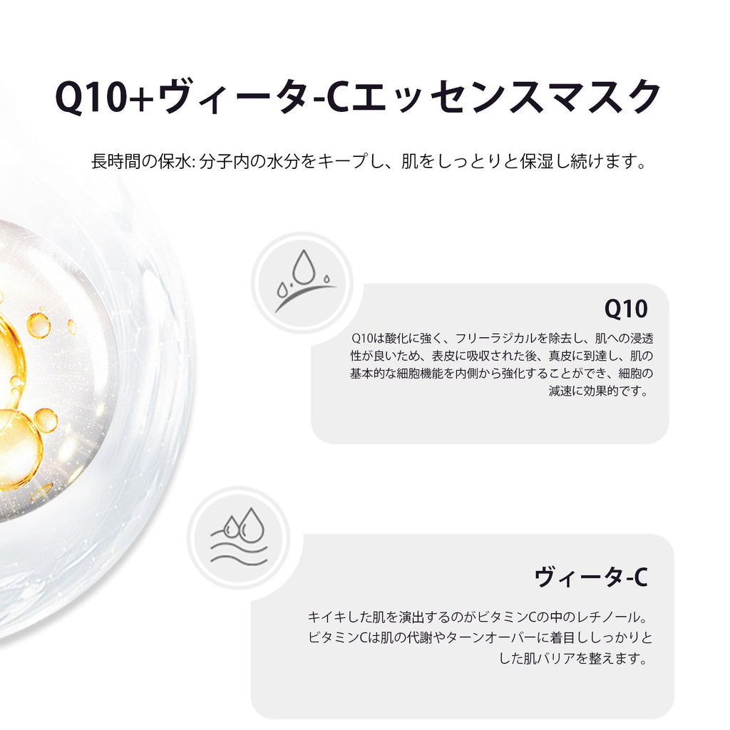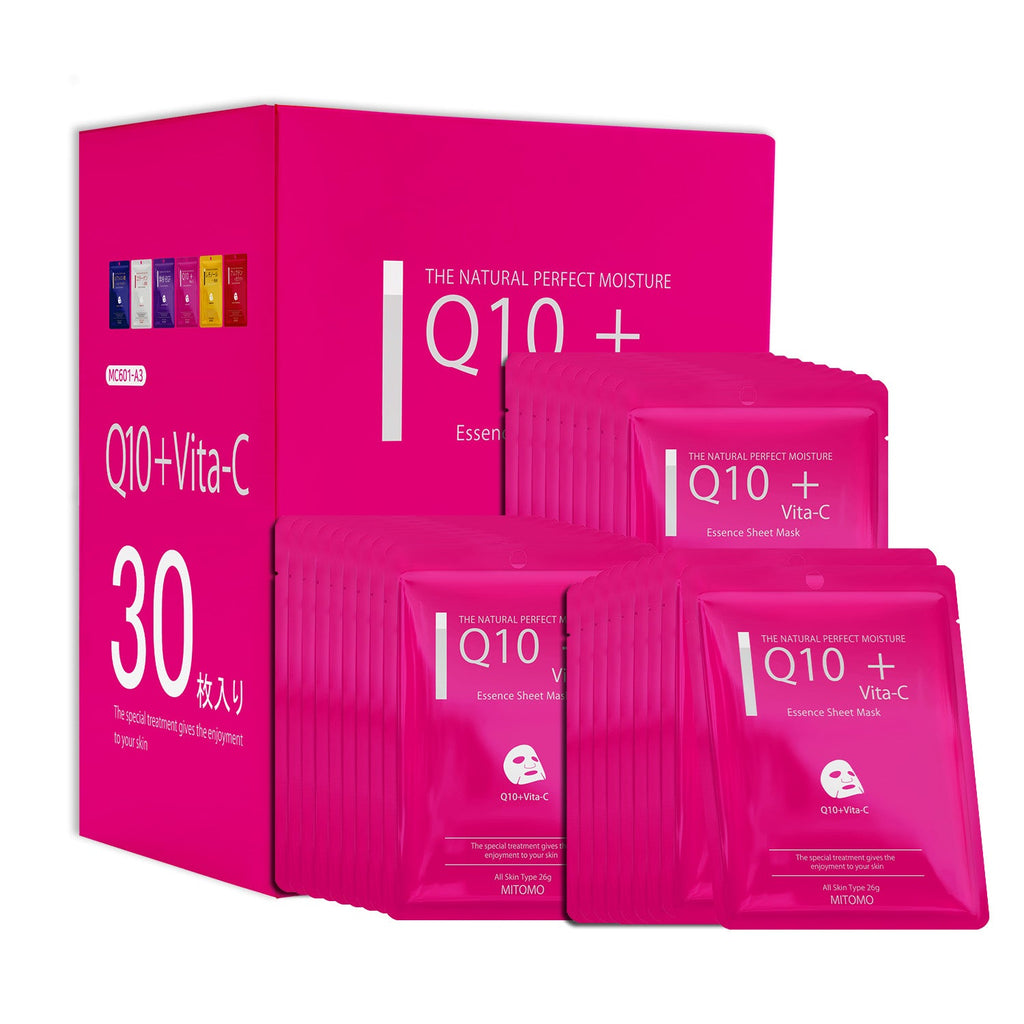 若々しく輝く肌を目指す!MITOMO Q10+ヴィータ-Cエッセンスマスク/30枚<日本製>【MCSS00601-A-3x003】