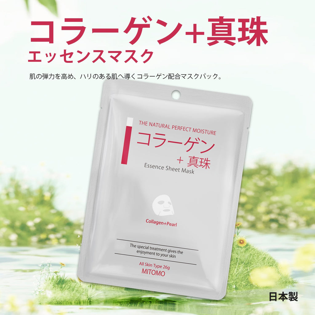 MITOMO コラーゲン+真珠エッセンスマスク【MCSS00601-A-1x003】毎日のスキンケアに取り入れることで、肌深部に栄養成分が浸透し、シワやたるみを軽減し、輝く美しい肌を実現します。コラーゲンと真珠エッセンスが肌の弾力性と保湿をサポートし、若々しい外観を保ちます。