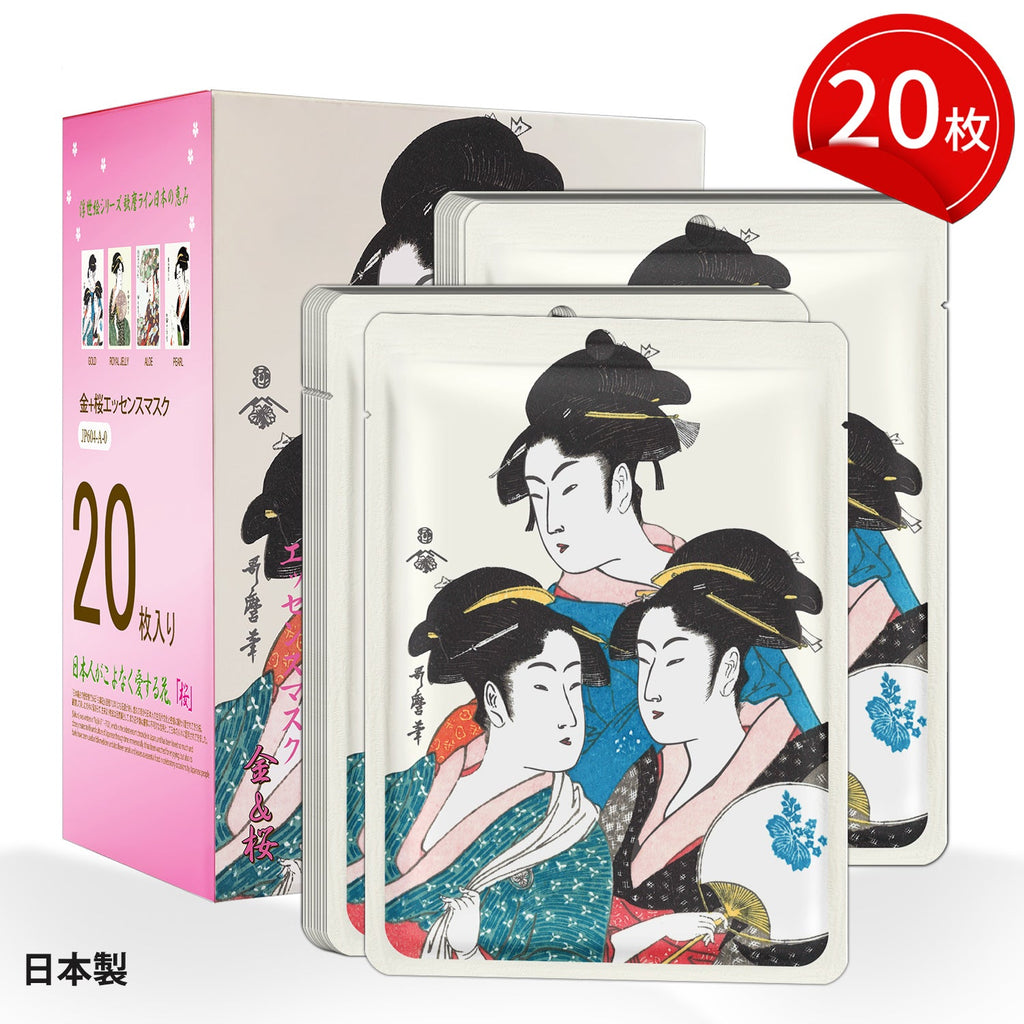 MITOMO <日本製>ミトモ 浮世絵604 Gold + Sakura /ゴールド+サクラ /金+桜エッセンスマスク カブキ ダンリョク フェイスマスク エステ/20枚【JPSS0604-A-0x002】