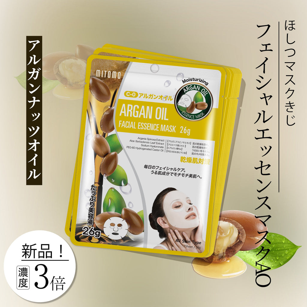 美しい肌を手に入れたい女性のためのMITOMO ナチュラルアルガンオイルモイスチャライジングフェイシャルエッセンスマスク【MTSS00512-C-0J】。毎日のスキンケアに取り入れて、アルガンオイルの恵みで肌を満たしましょう。アルガンオイル、アロエ、そして独自の技術が肌の保湿と滑らかさを実現します。