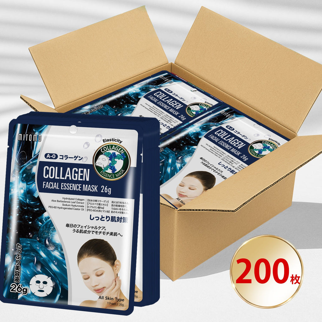 若々しい肌を手に入れる!MITOMO天然コラーゲン弾性フェイシャルエッセンスマスク/200枚/ミトモパック/【MTSS00512-A-0Jx020】