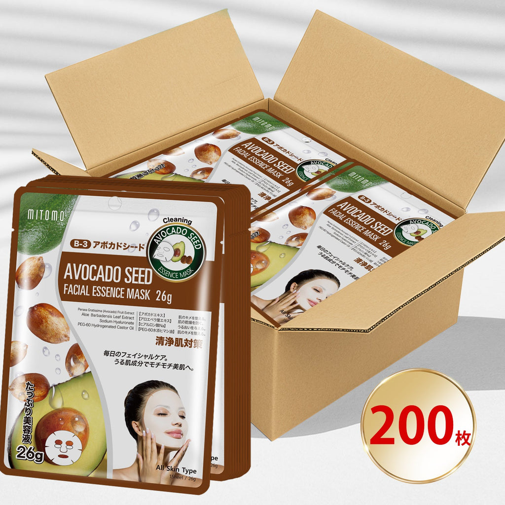 MITOMO ナチュラルアボカドシードクリーニングフェイシャルエッセンスマスク/200枚- アボカドの恵みで健康的な美肌を手に入れよう!/ミトモパック/【MTSS00512-B-3Jx020】