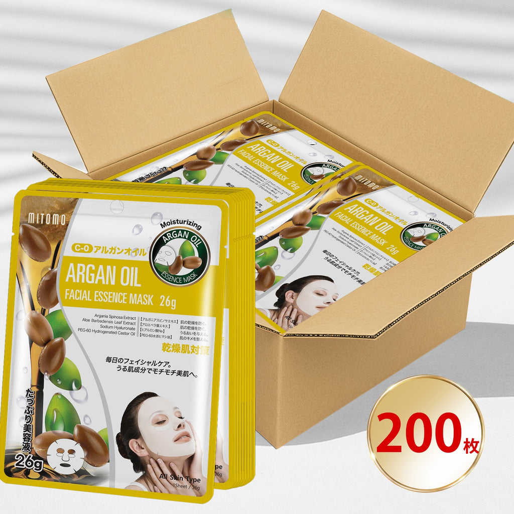 MITOMOアルガンオイルエッセンスマスク/200枚 - 深い潤いで美しい肌へ/ミトモパック/【MTSS00512-C-0Jx020】