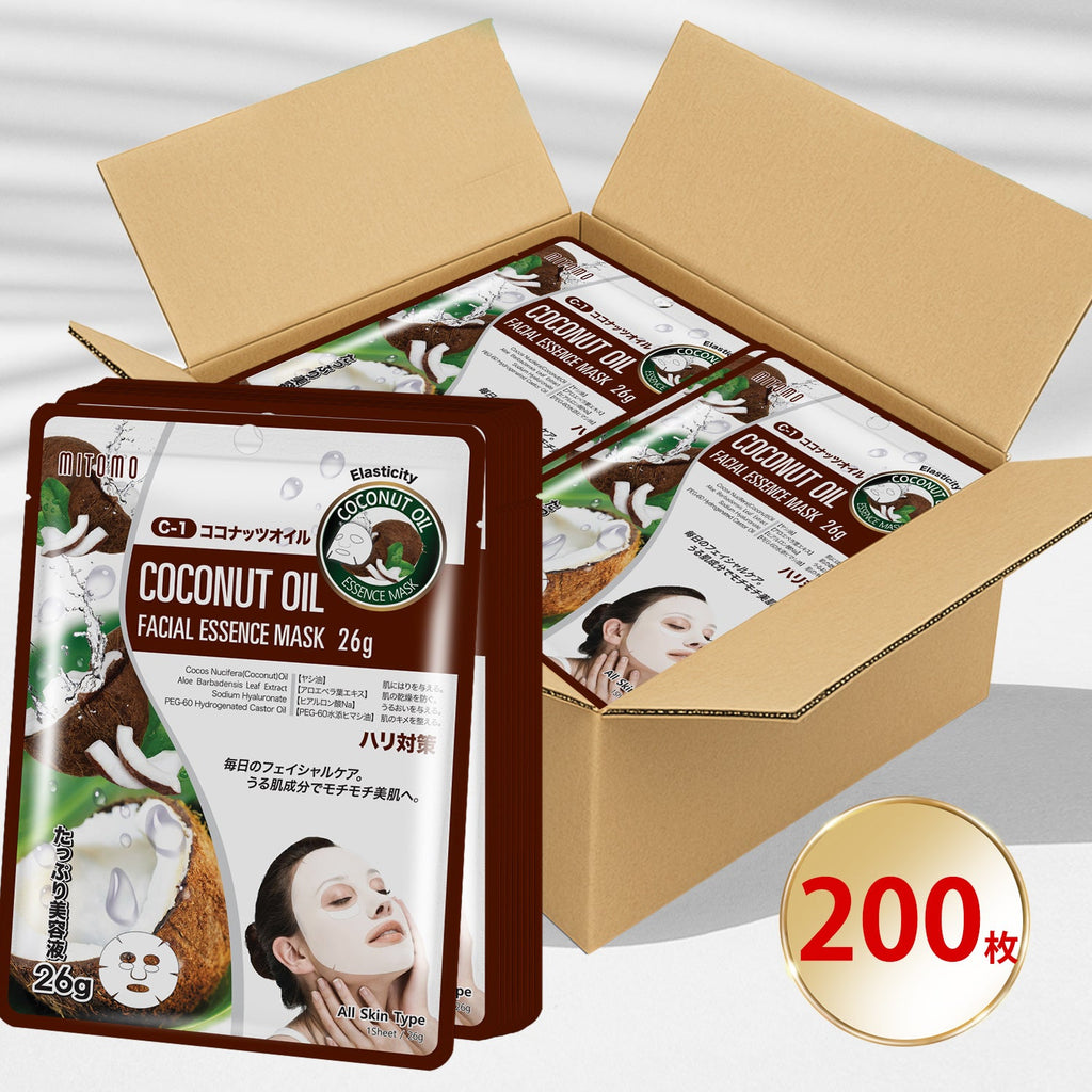 MITOMOミトモ ナチュラルココナッツオイル 弾力フェイシャルマスク/200枚- 贅沢な潤いと弾力を肌にもたらす!/ミトモパック/【MTSS00512-C-1Jx020】