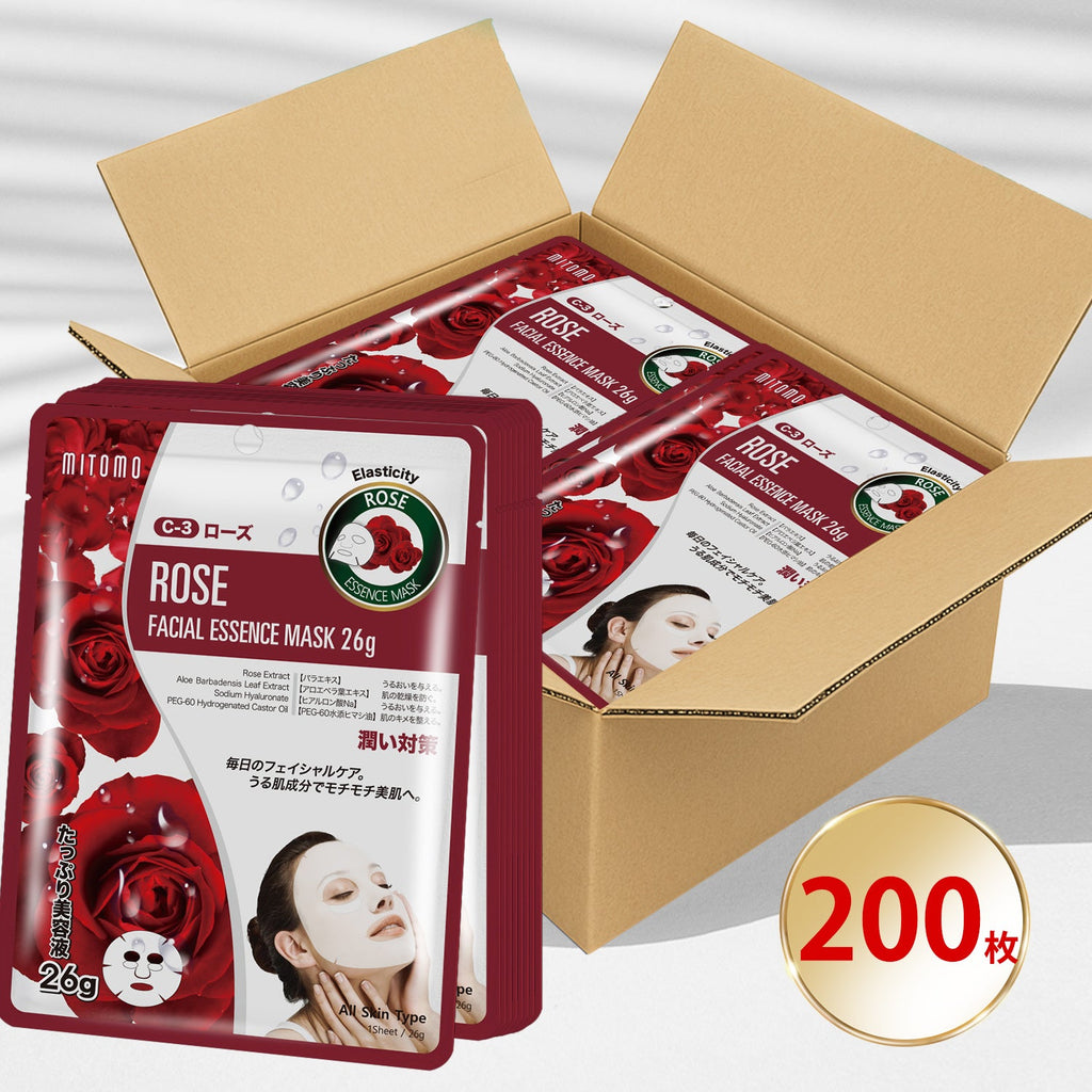 MITOMO ナチュラルローズスージングフェイシャルエッセンスマスク/200枚- ローズのやさしさで肌を包み込み、美しい肌を手に入れよう!/ミトモパック/【MTSS00512-C-3Jx020】