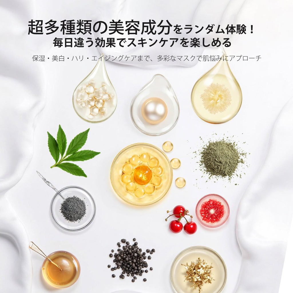 • 保湿、美白、ハリ、エイジングケアなど、多彩な効果をランダムに楽しめる