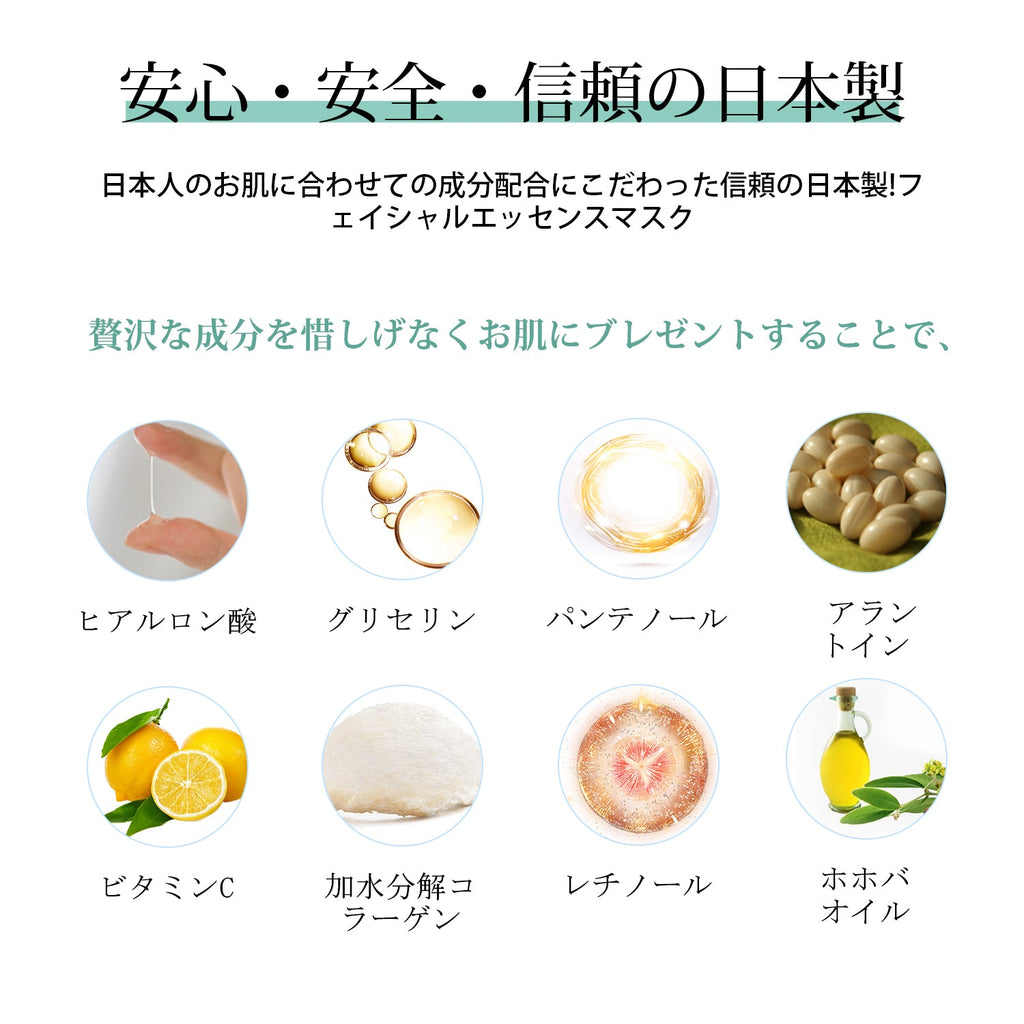 MITOMO美肌フェイスマスクは、お肌に潤いを与える16枚入りのセットです。高濃度の保湿成分が乾燥を防ぎ、柔らかくなめらかな肌へ導きます。天然アロエベラ抽出物を使用し、肌の保湿率を倍増させます。