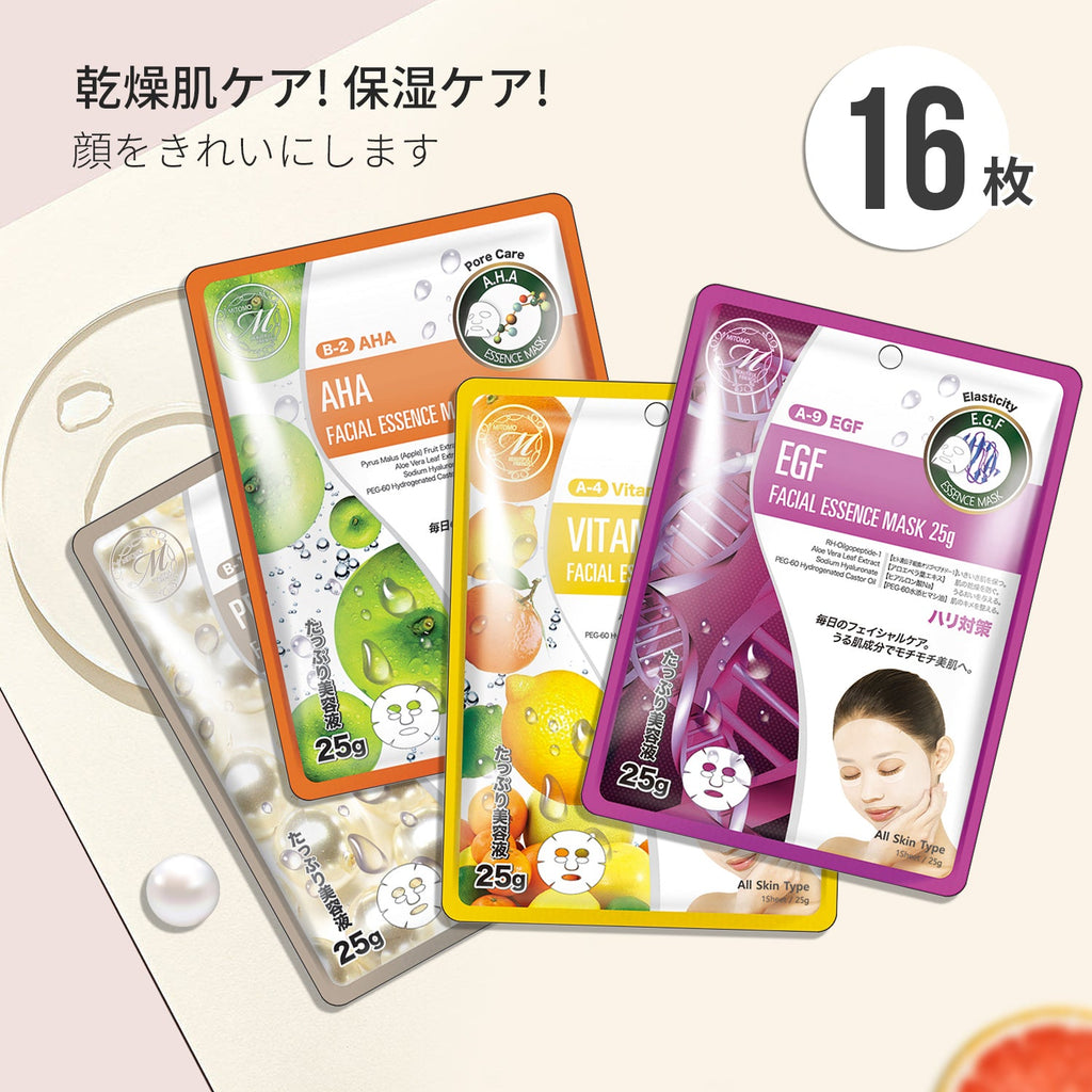 - 高濃度保湿成分で肌に潤いを与える16枚入りセット