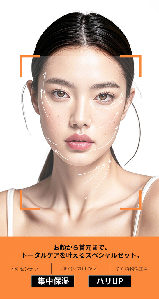 このセットで、肌の内側から輝き、引き締まったハリのある素肌へ導きます。