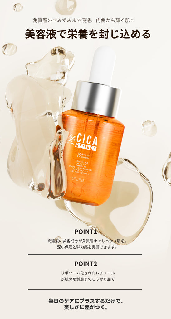 レチノールとCICAが肌を整え、エイジングケアと肌荒れ予防の両方を実現。