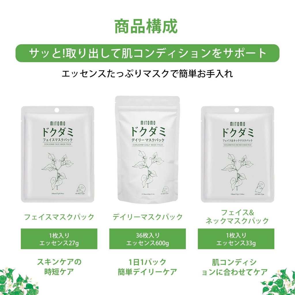 MITOMO <日本製> ドクダミセットマスクパック - 毎日の使用で肌が潤い、輝きが戻る!【DMSET-10】