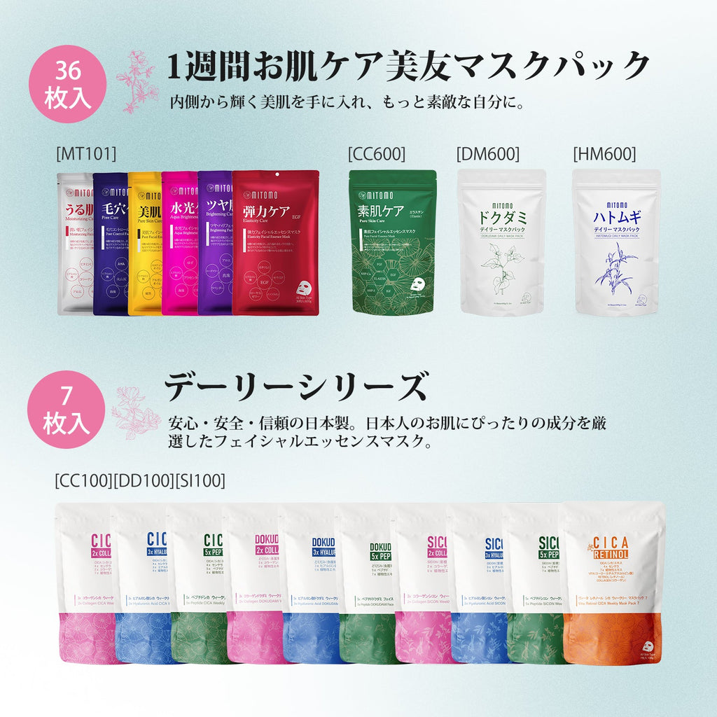 たっぷり使える大容量タイプと、使い切りで便利な個包装タイプのフェイスマスクが豪華にセット!